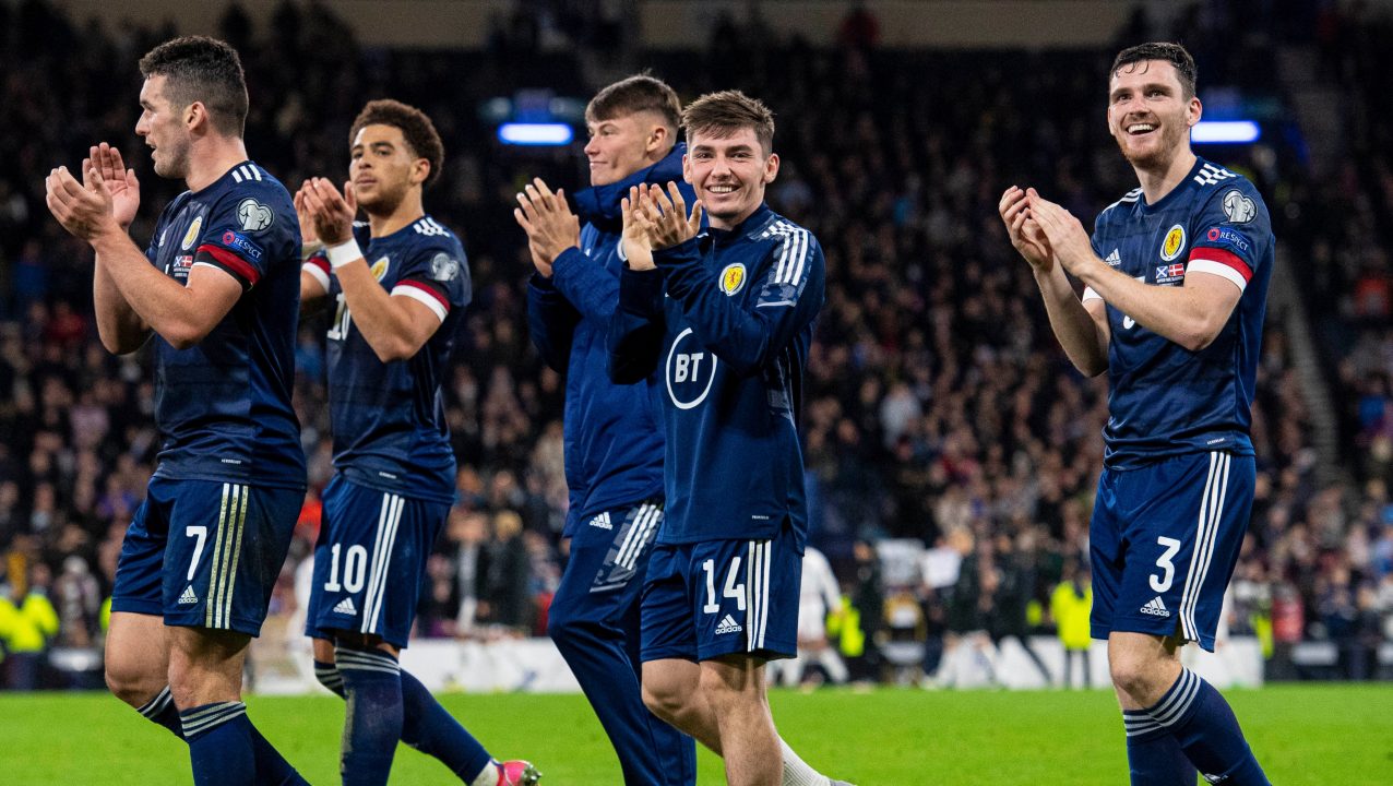 Scotland: Gordon, Cooper, Hanley, McTominay, Robertson, McGregor, Gilmour, Hickey, Dykes, Adams.