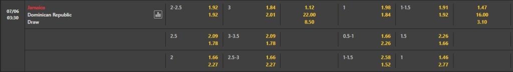 Tip kèo tỷ số hiệp 1: Jamaica 2-0 Cộng hòa Dominican