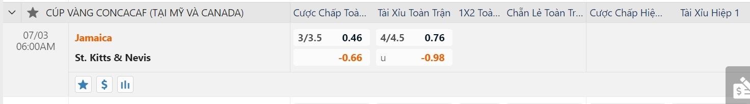 Tip kèo tỷ số hiệp 1: Jamaica 3-0 Saint Kitts Nevis