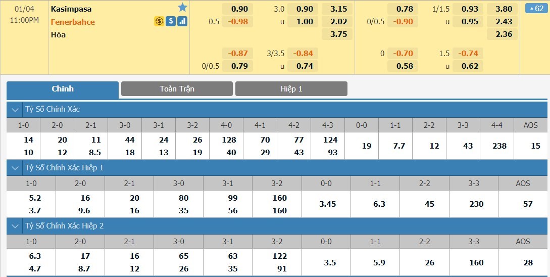 Như đã đề cập thì phong độ của chủ nhà Kasimpasa lúc này là không hề ổn định. Trong khi đó Fenerbahce lại là một trong số những đội có thành tích trên sân khách tại giải VĐQG Thổ Nhĩ Kỳ mùa bóng năm nay. Trong 7 chuyến hành quân xa nhà gần nhất, họ chỉ thua 1 trận, còn lại là 5 chiến thắng và 1 trận hòa. Thắng kèo châu Á 5/7 trận kể trên, Fenerbahce đích thị là cái tên an toàn dành cho giới mộ điệu. Ngoài ra xét thành tích đối đầu, Fenerbahce cũng là đội áp đảo với 7 chiến thắng trong 10 lần gần nhất chạm trán Kasimpasa.