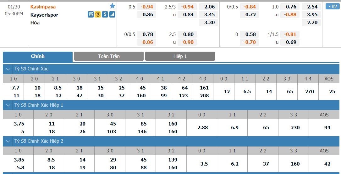 Hiện tại, Kasimpasa chỉ thắng 1 và nhận tới 3 thất bại trong 4 vòng đấu gần đây nhất. Kayserispor thì xuất phát điểm ở mùa giải năm nay ở nhóm cuối trong phần lớn thời gian Super Lig cho tới hiện tại. Tuy nhiên, đội bóng này đã thắng 3 trong 5 vòng gần nhất. Họ vốn dĩ không có kết quả tốt tại sân khách nhưng thành tích sân nhà của Kasimpasa cũng chẳng hơn. Kasimpasa đã thua tới 3 trong 4 trận đấu tại thánh địa của mình trước đó. Chính vì thế, khả năng cao ta sẽ có kết quả tốt cho đội khách Kayserispor khi họ được nhận tỷ lệ chấp +1/2 bàn. 4/6 trận đấu gần đây của Kayserispor khép lại với chỉ tối đa 2 bàn thắng mỗi trận.