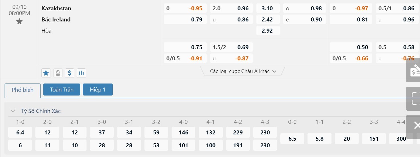 Tip kèo tỷ số hiệp 1: Kazakhstan 0-0 Bắc Ireland