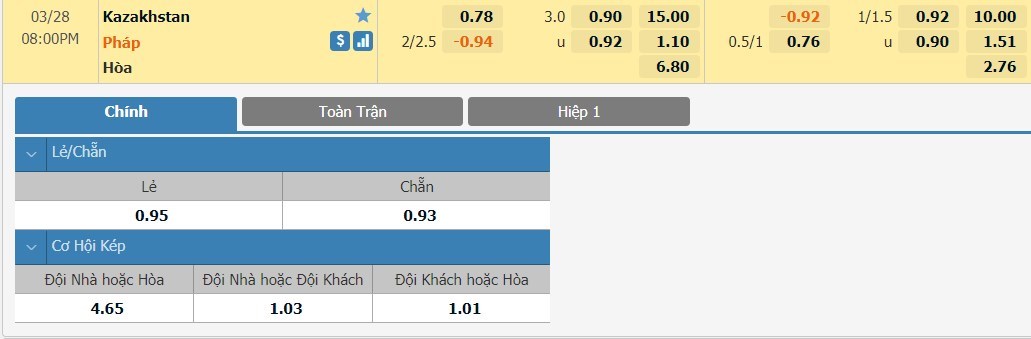 Tip kèo tỷ số hiệp 1: Kazakhstan 0-2 Pháp