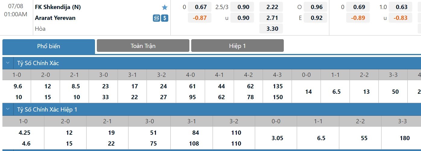 Màn so tài sắp tới giữa KF Shkendija và Ararat được tổ chức trên sân trung lập. Thế nên yếu tố sân bãi không phải thứ đáng để bận tâm. Thay vào đó, kinh nghiệm cùng bản lĩnh mới là thứ tạo ra khác biệt. Bối cảnh hiện tại có thể đưa cặp đấu về kèo Xỉu khi cả hai đội đều muốn chọn cách chơi an toàn hòng hạn chế sai lầm. Đáng chú ý Ararat đã để thua trong cả 4 lần ra sân liên tiếp gần đây. Đó rõ ràng là những con số báo hiệu sự rủi ro khi đặt cược vào Ararat.