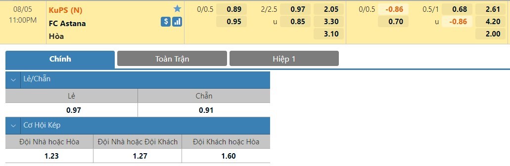 Mỗi khi được chơi trên sân nhà thì các chân sút của KuPS thường thi đấu hiệu quả hơn rất nhiều. Thống kê chỉ ra rằng đại diện của Phần Lan đã mang về tới 12 bàn thắng trong 5 trận sân nhà gần nhất của mình. Hơn nữa hàng thủ của FC Astana cũng đang chơi không quá ấn tượng ở mùa bóng năm nay. Vậy nên ở kèo tài xỉu thì người chơi có thể tự tin lựa chọn tài.