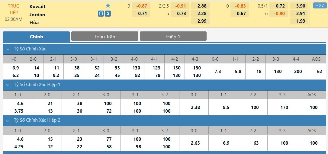 Tip kèo tỷ số hiệp 1: Kuwait 1-1 Jordan
