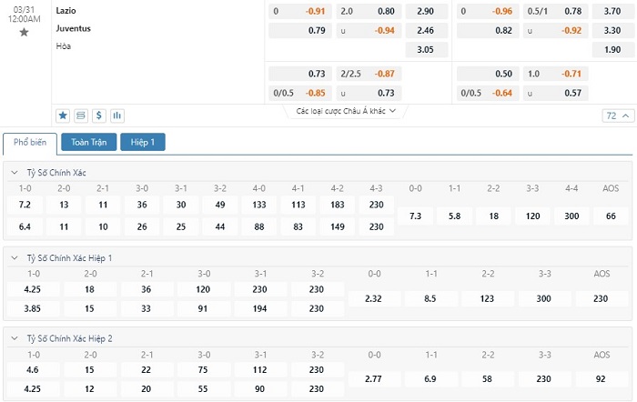 Tip kèo tỷ số hiệp 1: Lazio 0-0 Juventus
