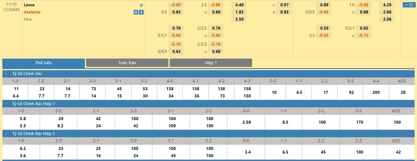 Trong 5 trận đấu gần nhất, Lecce đã có 3 trận đấu mang về được cho mình ít nhất là 1 bàn thắng trong hiệp đấu đầu tiên. Còn với Atalanta, đội bóng này đã có 4 lần làm được điều này trong 45 phút đầu tiên. Với tỷ lệ kèo hiệp 1 ở trận đấu này được đưa ra là -1/4 trái thì người chơi nên tin tưởng vào đội khách trận này.