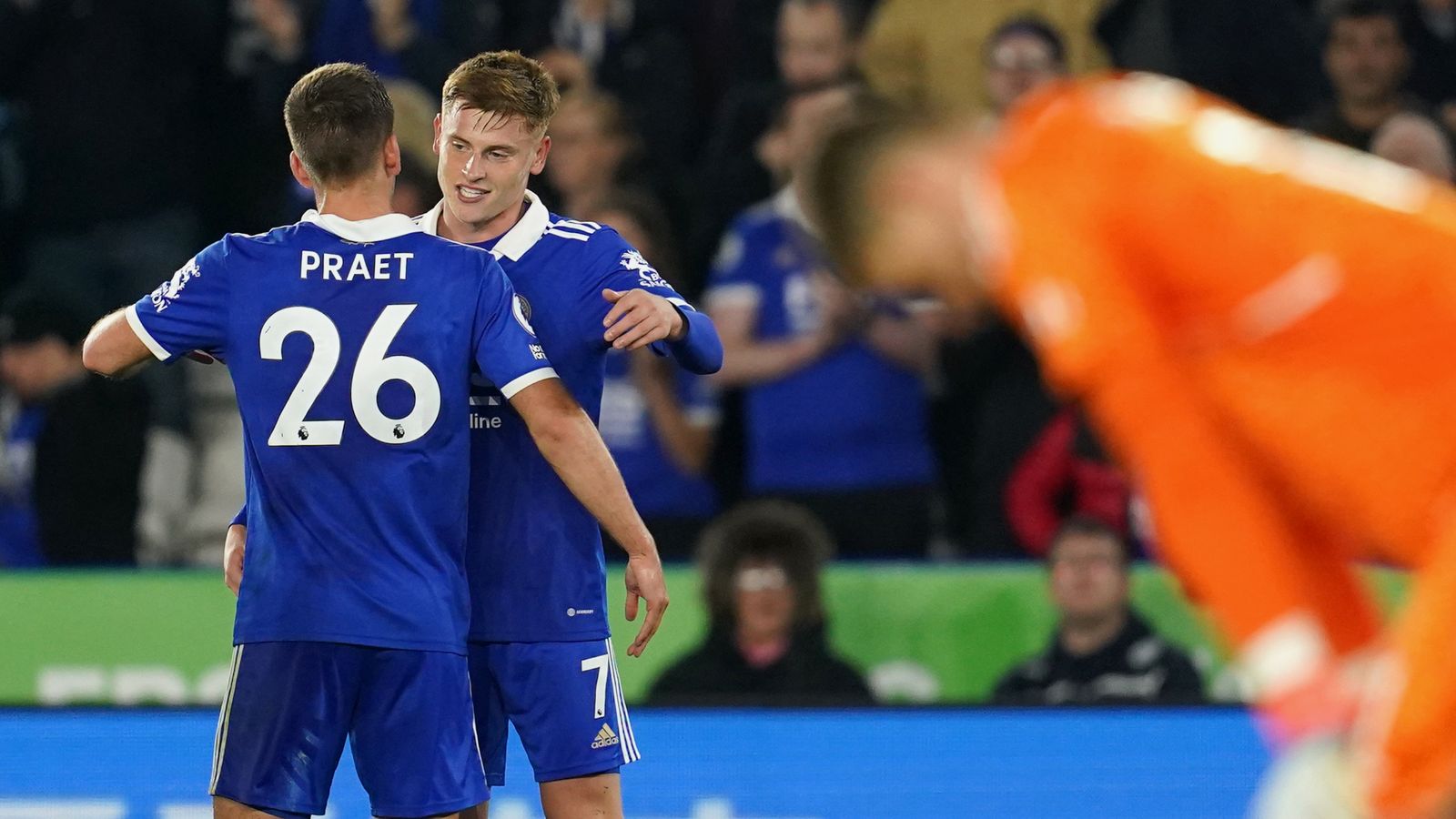 Leicester: Iversen; Castagne, Evans, Faes, Kristiansen; Dewsbury-Hall, Ndidi; Ricardo, Maddison, Tete; Vardy.