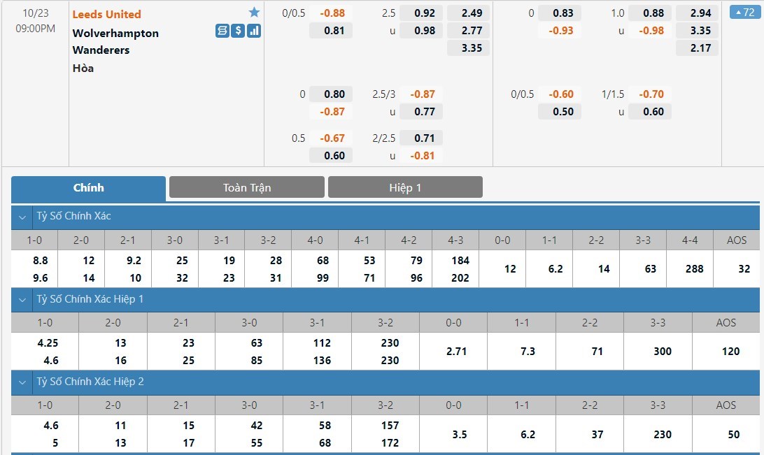 Tip kèo tỷ số hiệp 1: Leeds 1-1 Wolverhampton