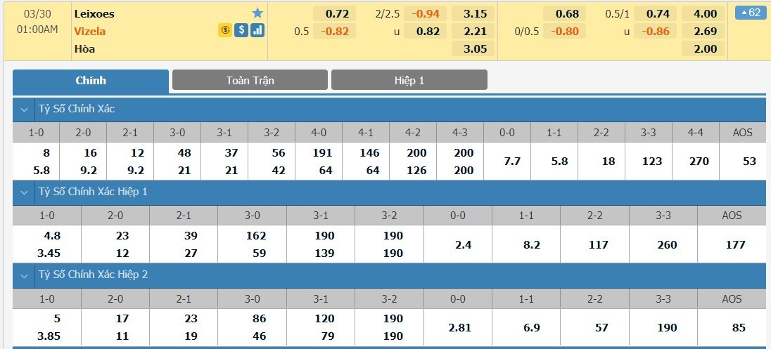 Tip kèo tỷ số hiệp 1: Leixoes 0-1 Vizela