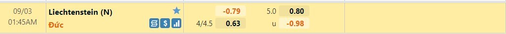 Tip kèo tỷ số hiệp 1: Liechtenstein 0-3 Đức