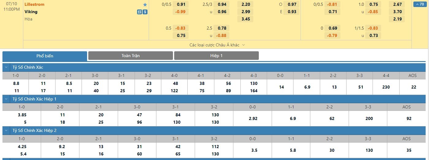 Tip kèo tỷ số hiệp 1: Lillestrom 0-0 Viking