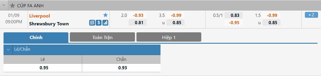 Tip kèo tỷ số hiệp 1: Liverpool 2-0 Shrewsbury