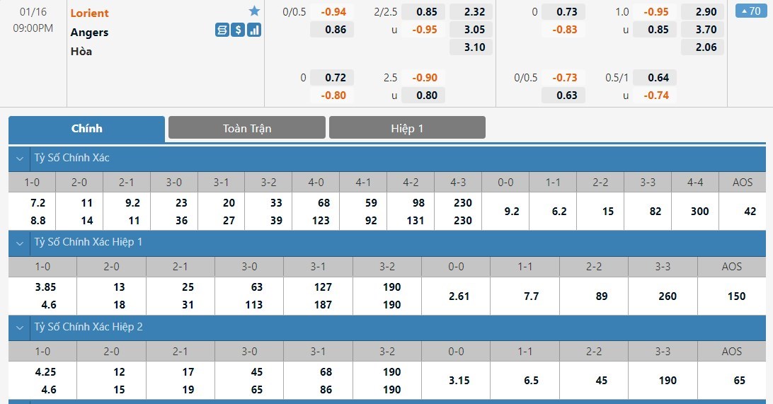 Mặc dù chủ nhà đang thi đấu sa sút và nằm trong nhóm cầm đèn đỏ của BXH nhưng bên kia chiến tuyến đội khách cũng đang sở hữu phong độ cực kỳ tệ hại. Hơn nữa trình độ của đôi bên lại không có quá nhiều sự chênh lệch. Dù sao họ cũng chỉ là những đội bóng tầm trung của Ligue 1. Vì vậy khả năng Lorient và Angers cầm chân nhau ở trận tới là không hề nhỏ. Và với tỷ lệ kèo châu Á mà nhà cái đưa ra là chủ nhà chấp 0.25 thì chắc chắn đội khách sẽ là lựa chọn an toàn hơn. Trận hòa gần nhất giữa 2 đội đã kết thúc với tỷ số 0-0. Và trong bối cảnh mà hàng công của đôi bên đều đang chơi cực kỳ tệ thì không loại trừ khả năng cuộc đối đầu tới cũng sẽ khép lại mà không có bất kỳ bàn thắng nào được ghi.