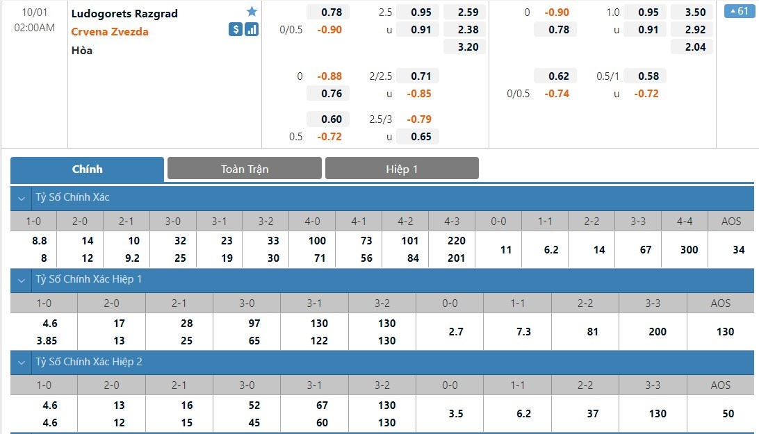 Điểm qua về mặt phong độ thì những vị khách đang nhỉnh hơn đôi chút. Tuy nhiên lợi thế sân nhà lại giúp cho đại diện của Bulgaria xóa nhòa đi khoảng cách về mặt phong độ đó. Thống kê cho thấy Ludogorets đã toàn thắng ở cả 10 trận sân nhà gần nhất của mình. Và với tỷ lệ kèo chấp mà nhà cái đưa ra là FK Crvena Zvezda chấp 0.25 trái thì Ludogorets vẫn sẽ là lựa chọn khôn ngoan của người chơi. Thống kê 4/5 trận đấu gần đây của Ludogorets Razgrad khép lại với chỉ tối đa 2 bàn thắng. Chủ nhà vào trận với tâm thế của đội cửa dưới nên sẽ hướng tới cách chơi thận trọng. Do vậy mà cửa xỉu là lựa chọn phù hợp hơn cả.