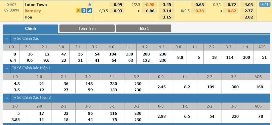 Tip kèo tỷ số hiệp 1: Luton 0-0 Barnsley