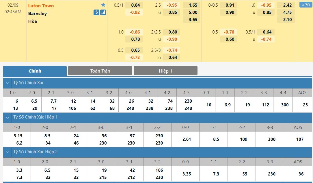 Luton thường nhập cuộc khá cẩn trọng, và đó là lý do 3 trên 4 trận gần nhất họ không có bàn trước giờ nghỉ. Ngược lại với Barnsley, đội khách chắc chắn cũng không dám mạo hiểm trước một đối thủ trên kèo. Hiệp đấu đầu tiên được dự đoán có kết quả hòa 0-0 cho 2 đội, kèo châu Á nhà cái ấn định chủ nhà chấp 0.25 bàn và đầu tư cửa dưới Barnsley là hợp lý.