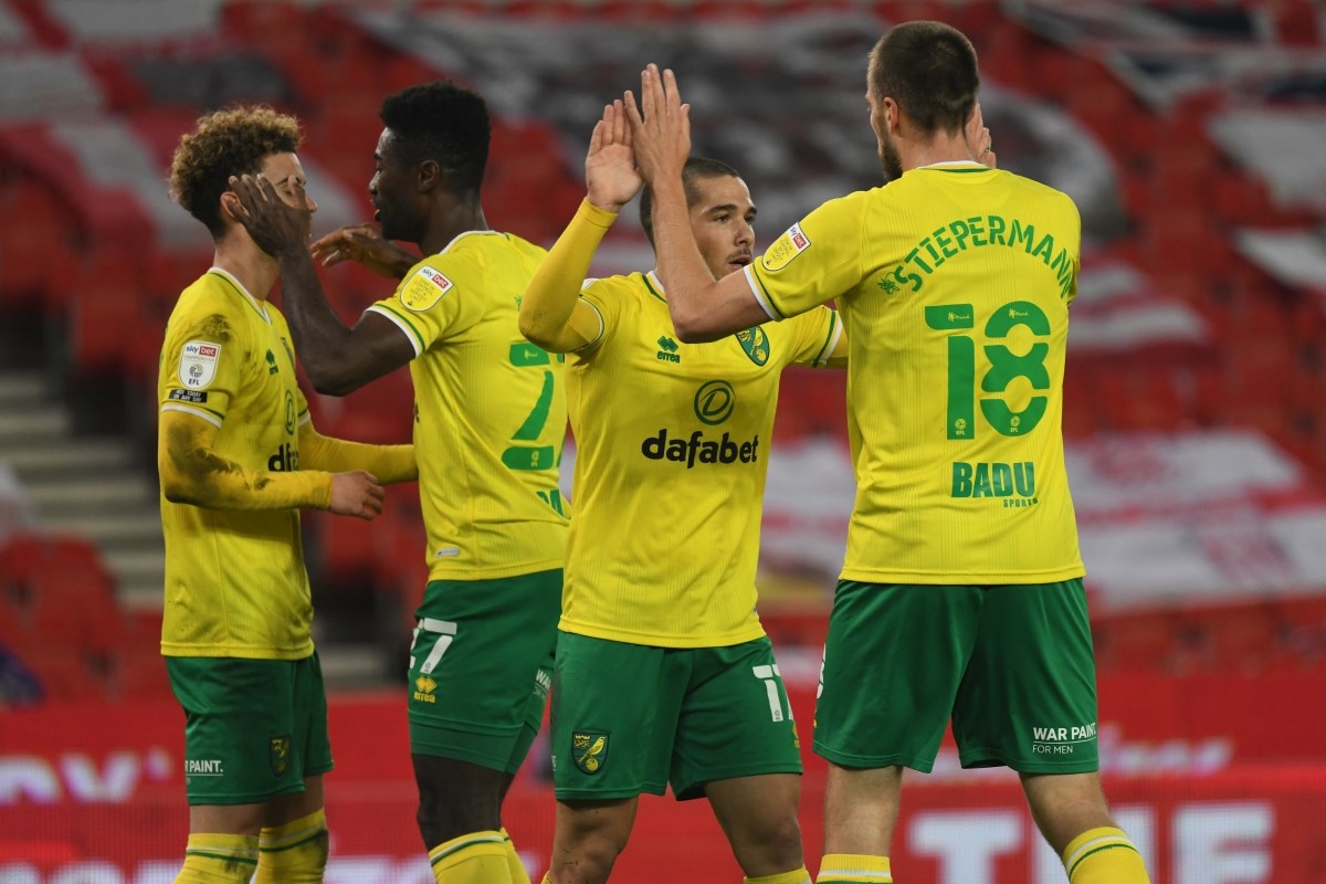 Norwich: Krul – Klose – Godfrey – Aarons – Lewis – McLean – Trybull – Buendia – Stiepermann – Pukki – Drmic.