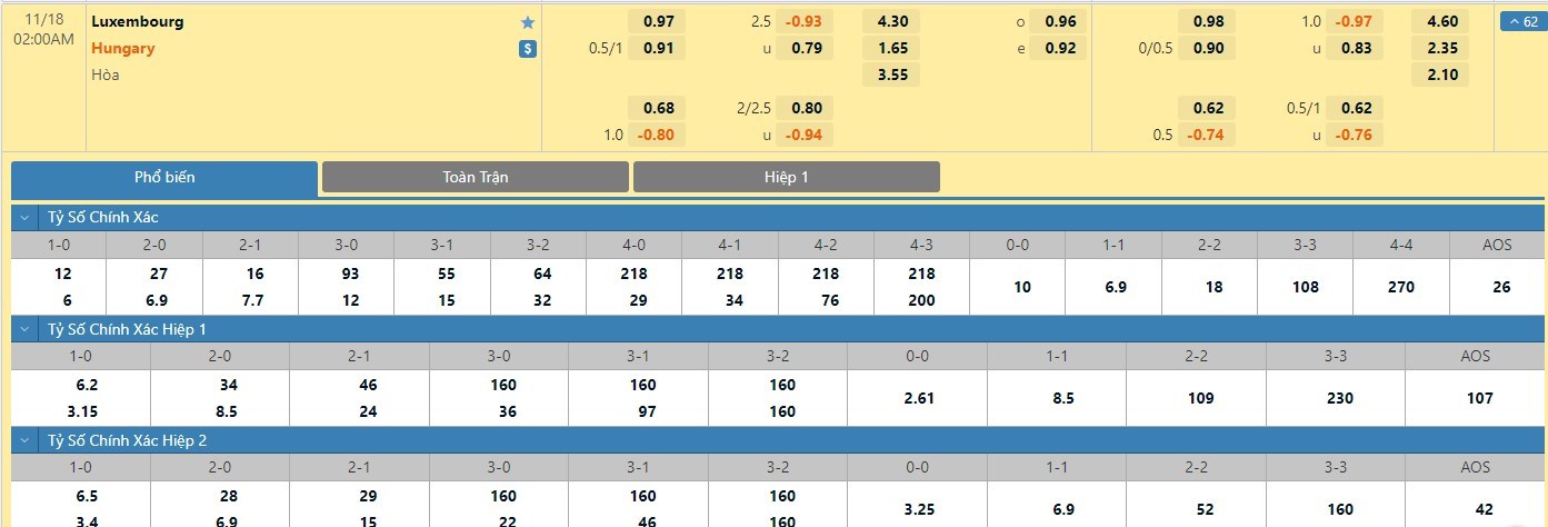 Trong 5 trận đấu gần nhất của mình, Luxembourg đã có 2 trận đấu mang về được cho mình ít nhất là 1 bàn thắng trong hiệp đấu đầu tiên. Còn với Hungary, đội bóng này đã có 3 lần làm được điều này trong 45 phút đầu tiên. Với tỷ lệ kèo hiệp 1 ở trận đấu này thì người chơi nên tin tưởng vào Hungary trận này.