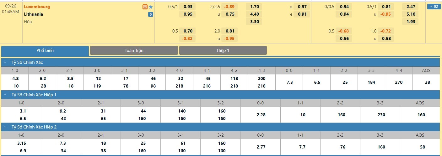 Trong 5 trận đấu gần nhất của mình, Luxembourg đã có 2 trận đấu mang về được cho mình ít nhất là 1 bàn thắng trong hiệp đấu đầu tiên. Còn với Lithuania, đội bóng này chỉ sở hữu vỏn vẹn 1 lần sút tung lưới đối phương trong 45 phút đầu tiên. Dẫu vậy thì với tỷ lệ kèo hiệp 1 ở trận đấu này được đưa ra là -1/4 trái, người chơi nên tin tưởng vào đội chủ nhà trận này.