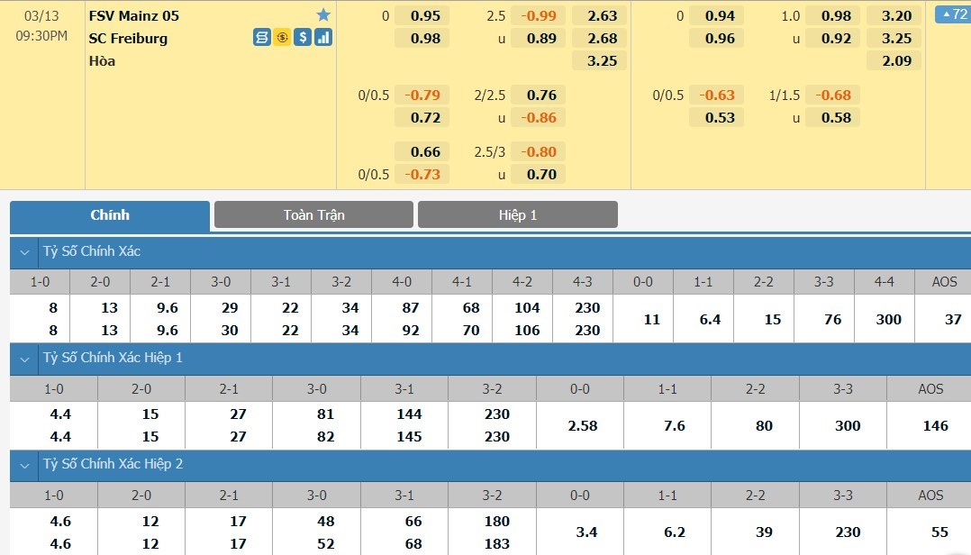 Tip kèo tỷ số hiệp 1: Mainz 05 0-0 SC Freiburg