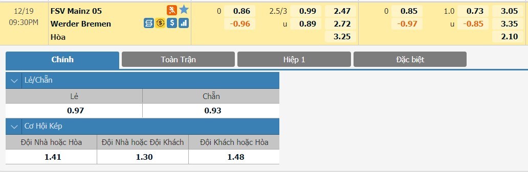 Tip kèo tỷ số hiệp 1: Mainz 1-1 Werder Bremen