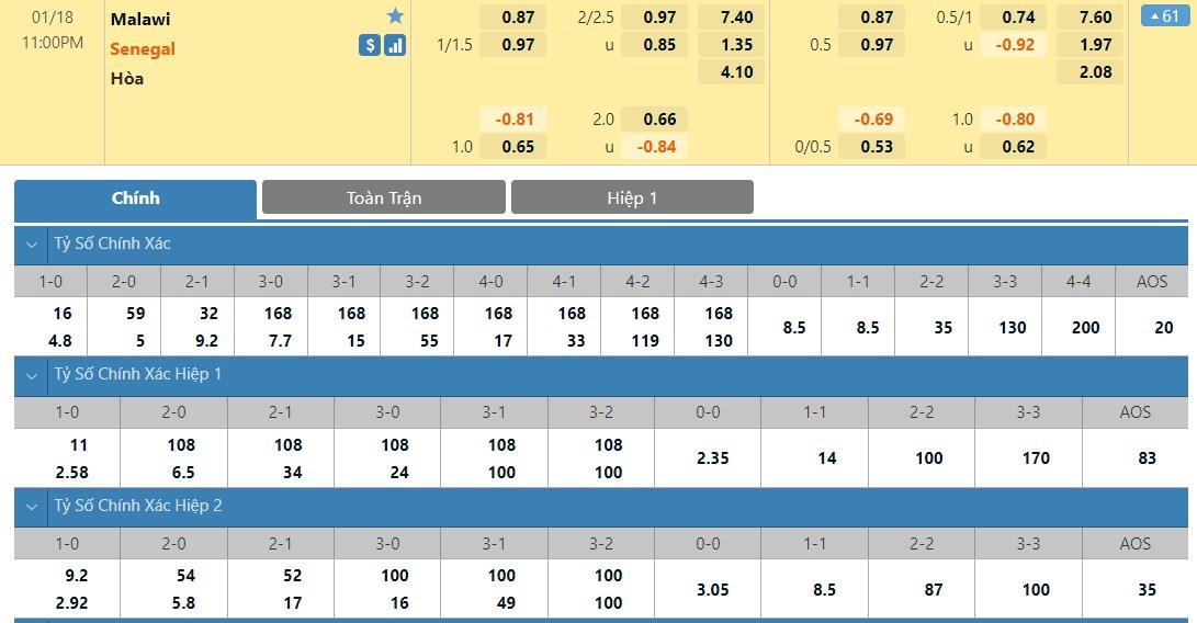 Tip kèo tỷ số hiệp 1: Malawi 0-1 Senegal