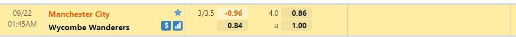 Tip kèo tỷ số hiệp 1: Manchester City 3-0 Wycombe