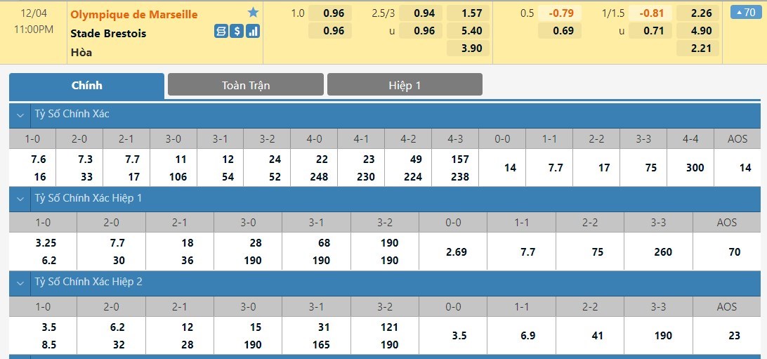 Cơ hội có điểm của Stade Brestois 29 càng được củng cố hơn khi chúng ta nhìn vào những đối thủ mà họ đụng độ ở chuỗi trận thăng hoa vừa qua. Cụ thể thì đoàn quân của Michel Der Zakarian đã xuất sắc cầm hòa nhà ĐKVĐ Lille, tiếp đó họ đã hạ gục cả Monaco lẫn Lens, những cái tên sừng sỏ của bóng đá Pháp. Vì vậy việc Stade Brestois 29 có cầm chân Marseille ở vòng đấu tới thì đó cũng chẳng phải kết quả quá bất ngờ. Bàn thắng luôn là thứ không thể thiếu trong những cuộc đụng độ giữa 2 đội bóng này. Theo như kết quả thống kê trong 5 lần gần nhất 2 đội gặp nhau thì đã có tới 4 trận khép lại với từ 3 pha lập công trở lên. Vì vậy ở kèo tài xỉu của trận cầu tới người chơi cũng nên ưu tiên bắt tài để có cơ hội ăn cao hơn.