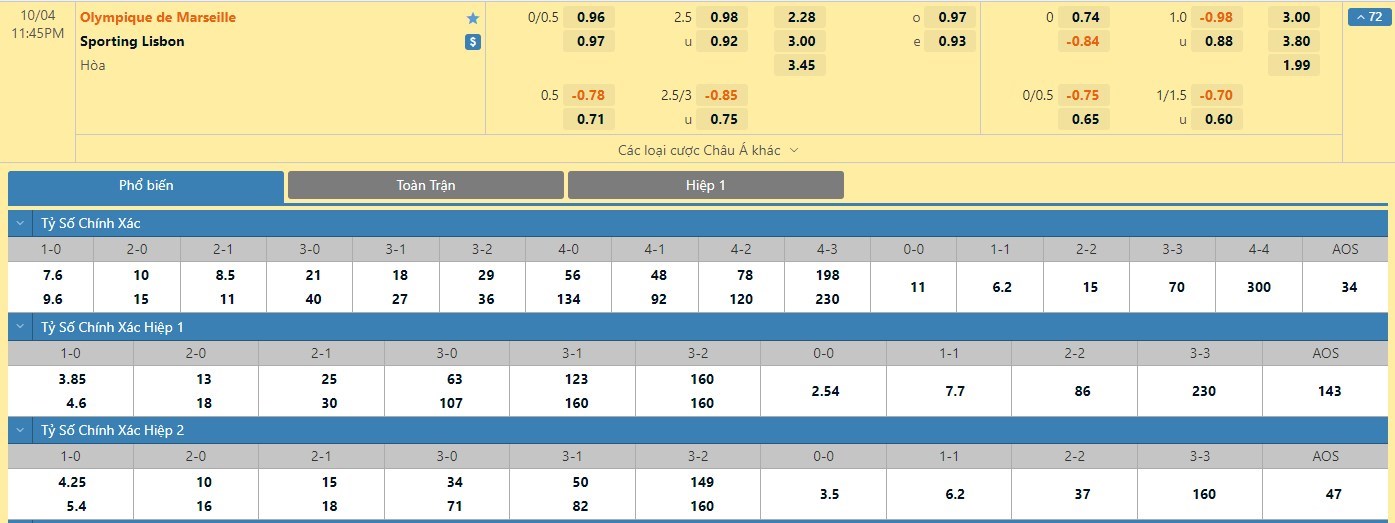 Trong 5 trận đấu gần nhất của mình, Marseille đã có 2 trận đấu mang về được cho mình ít nhất là 1 bàn thắng trong hiệp đấu đầu tiên. Còn với Sporting Lisbon, đội bóng này cũng đã có 2 lần nào làm được điều này trong 45 phút đầu tiên. Với tỷ lệ kèo hiệp 1 ở trận đấu này thì người chơi nên tin tưởng vào đội khách trận này.