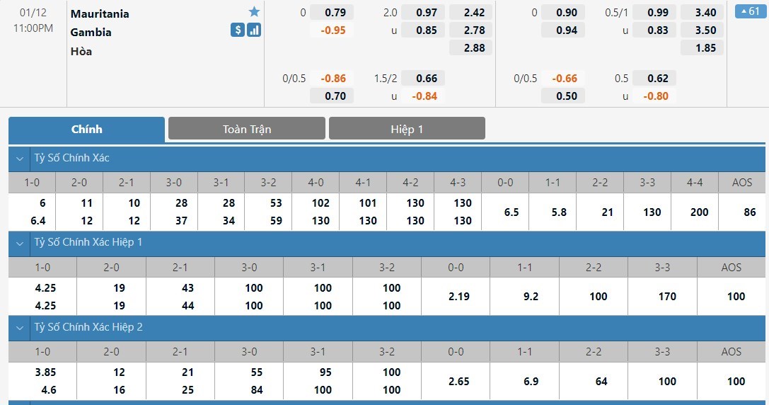 Tip kèo tỷ số hiệp 1: Mauritania 0-0 Gambia
