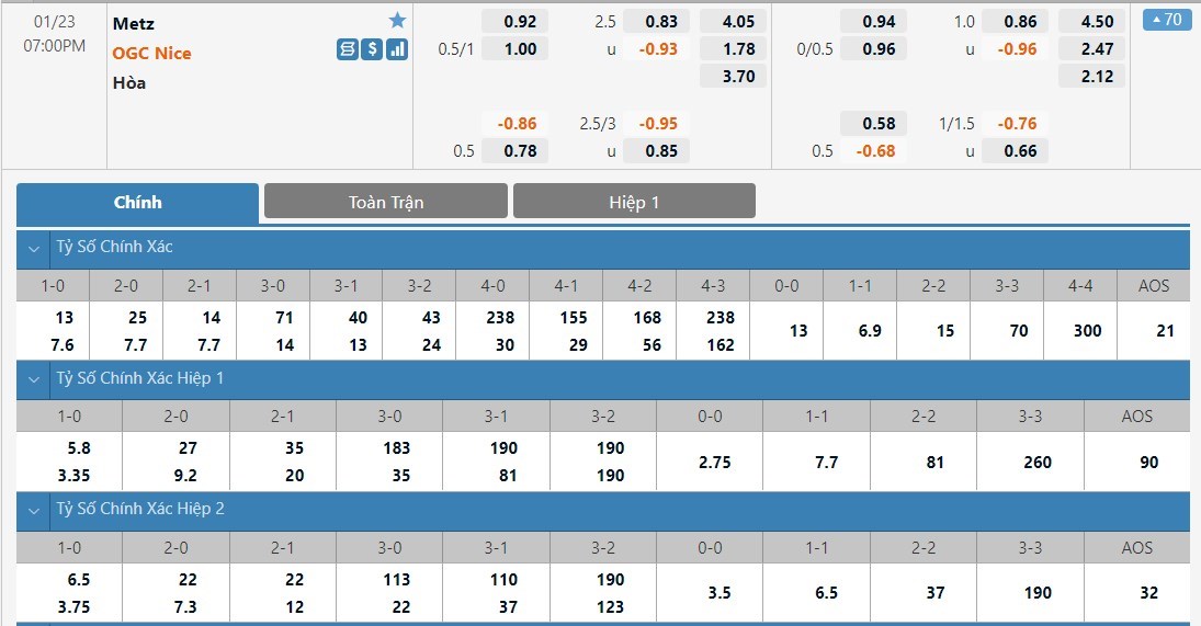 Tip kèo tỷ số hiệp 1: Metz 1-1 Nice