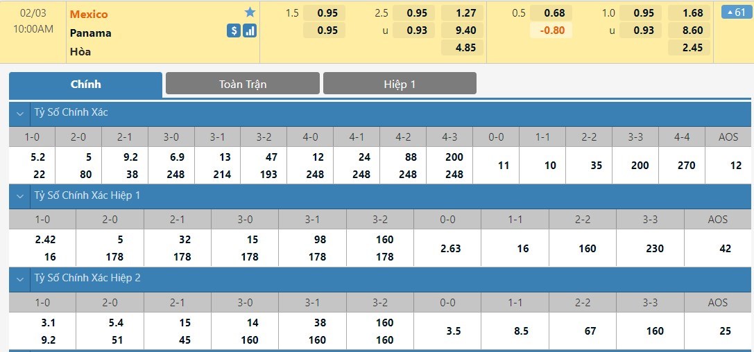 Tip kèo tỷ số hiệp 1: Mexico 2-0 Panama