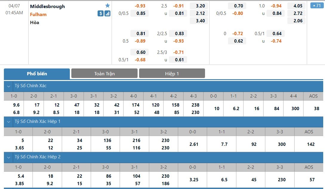 Tip kèo tỷ số hiệp 1: Middlesbrough 0-0 Fulham