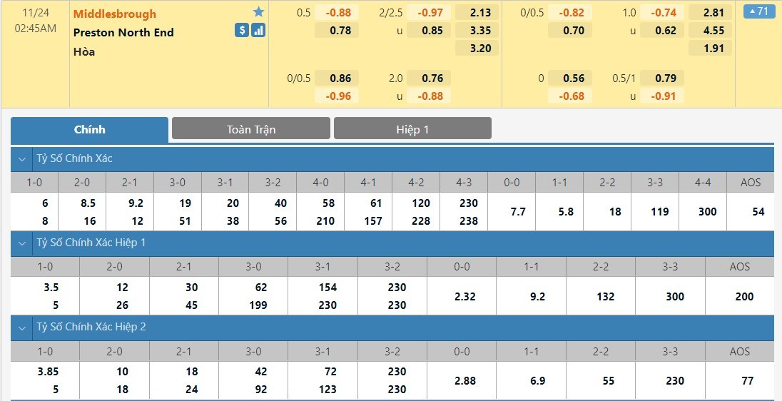 Không hề ngạc nhiên khi Middlesbrough được nhà cái xếp ở vị thế cửa trên cùng với mốc chấp 1/2 trái kèo đấu này. Dù rằng phong độ thời điểm hiện tại đang sa sút nhưng tại tổ ấm của mình, Middlesbrough vẫn có điểm tựa nhất định. Dù sao thì họ cũng thắng 3/5 trận sân nhà gần nhất. Ở mùa giải trước, Middlesbrough đã đánh bại Preston với tỷ số 2-0 trên sân nhà Riverside. Đó là căn cứ củng cố niềm tin vào khả năng giành 3 điểm của đội chủ nhà. Thống kê trong 4 màn đọ sức trực tiếp gần nhất giữa Middlesbrough và Preston thì chỉ có 1 trận xuất hiện nhiều hơn 2 bàn thắng. Vậy nên, ô cược xỉu là lựa chọn phù hợp dành cho các nhà đầu tư.