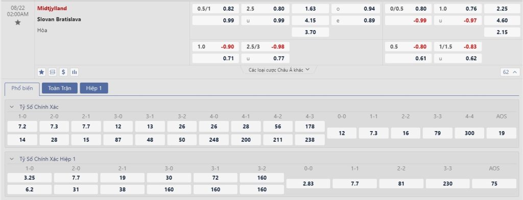 Tip kèo tỷ số hiệp 1: Midtjylland 0-0 Slovan Bratislava
