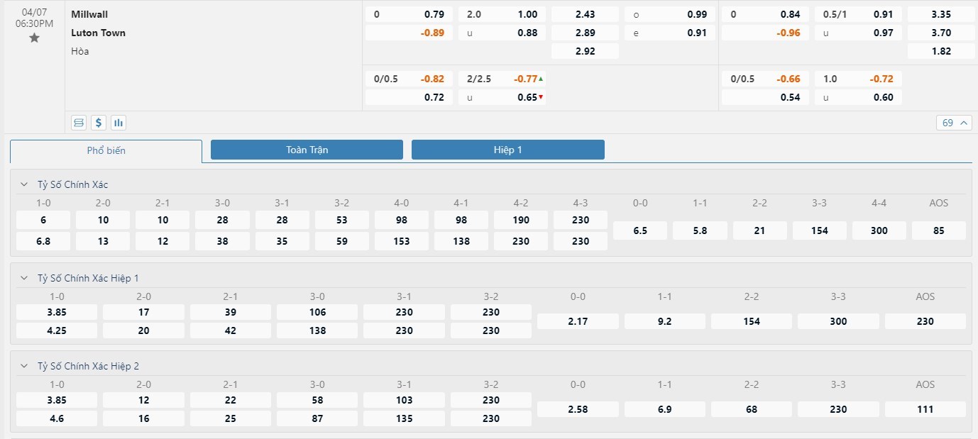 Trong 5 trận đấu gần nhất hai bên đối đầu nhau trực tiếp, Millwall đã có 3 trận đấu mang về được cho mình ít nhất là 1 bàn thắng trong hiệp đấu đầu tiên. Còn với Luton, đội bóng này đã 2 có lần làm được điều này trong 45 phút đầu tiên. Với tỷ lệ kèo hiệp 1 là đồng banh thì người chơi nên tin tưởng vào tỷ số hòa trận này. Trong 5 trận đấu gần nhất trên mọi đấu trường, Millwall đã mang về cho mình 5 pha lập công cùng với 5 lần phải vào lưới nhặt bóng. Bên kia chiến tuyến, Luton đã sở hữu 6 bàn thắng, còn lại là việc hàng thủ đã phải nhận 1 bàn thua.