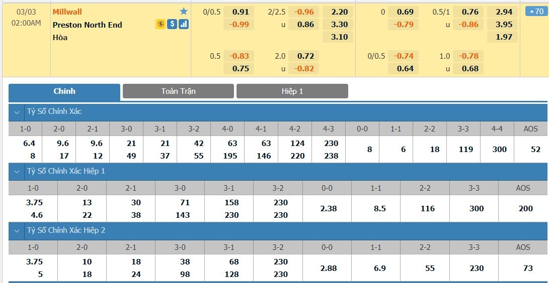 Tip kèo tỷ số full time: Millwall 1-0 Preston North End