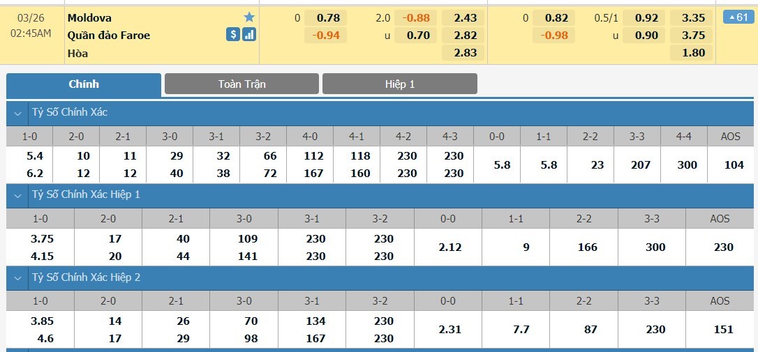 Nhà cái đưa ra kèo đồng banh cho trận đấu này. Theo chuyên gia phân tích thì Quần đảo Faroe sẽ là ô cược sáng nước hơn dựa vào phong độ đôi bên thể hiện. Thống kê 4/5 cuộc đọ sức gần nhất giữa Moldova và Quần đảo Faroe đã khép lại mà không xuất hiện quá mốc 2 bàn mỗi trận.