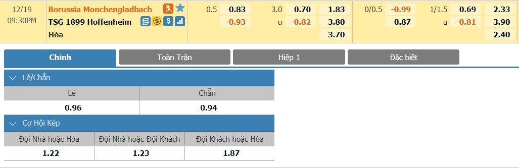 Ngoài ra, nếu nhìn trên khía cạnh thành tích đối đầu thì Monchengladbach cũng không thực sự nắm ưu thế trong những lần chạm trán Hoffenheim trước đây. Cụ thể là trong 10 cuộc đọ sức gần nhất giữa hai đội, Monchengladbach có 3 thắng lợi, 6 trận hòa và thua 1 trận dưới tay Hoffenheim. Chính trên sân nhà của mình thì Monchengladbach lại không thắng ở 4 lần gần nhất đón tiếp Hoffenheim trong khuôn khổ Bundesliga. Lựa chọn cửa dưới là quyết định sáng suốt ở kèo đấu này.