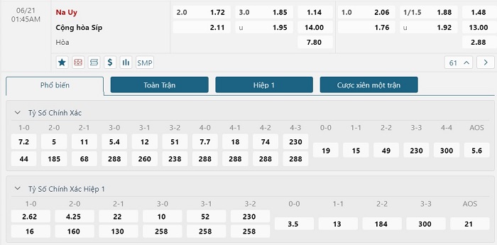 Tip kèo tỷ số hiệp 1: Na Uy 2-0 Cộng hòa Síp