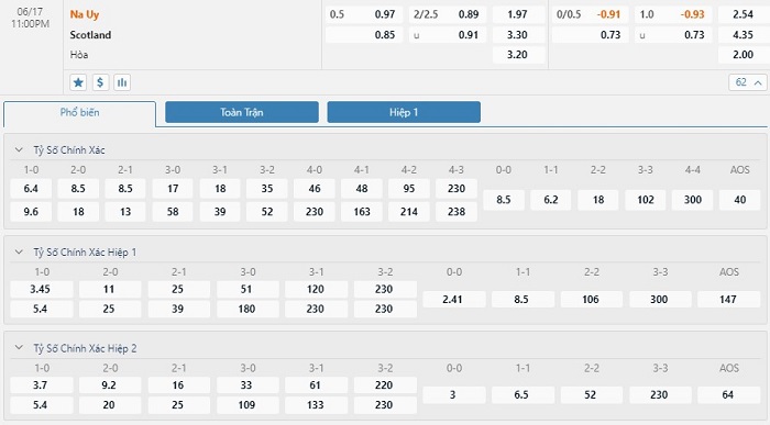 Tip kèo tỷ số hiệp 1: Na Uy 0-0 Scotland