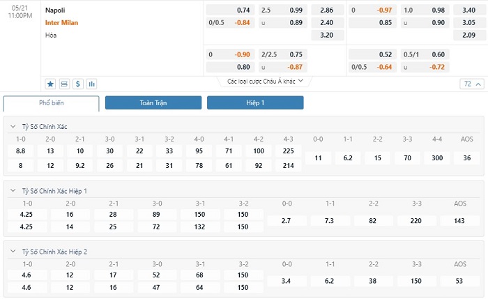 Napoli chơi trên sân nhà và với việc họ đã không còn nhiều động lực chiến đấu sau khi đăng quang sớm thì nhà cái đang dành đánh giá cao hơn dành cho đội khách Inter Milan. Nhà cái đặt Inter Milan ở thế chiếu trên cùng tỷ lệ chấp -1/4 trái trận đấy này là có lý do. Đây là thời điểm Inter Milan đang đạt phong độ cực cao. Họ đang duy trì chuỗi 9 trận liên tiếp bất bại, trong số này có 8 chiến thắng. Chưa kể là thành tích đối đầu cũng chỉ ra ưu thế nghiêng về Inter. Trong 6 lần chạm trán gần nhất giữa hai đội, Inter Milan bất bại với 4 chiến thắng và 2 trận hòa. Vì lẽ đó, người chơi có thể hoàn toàn yên tâm đặt niềm tin vào ô cược Inter Milan kèo đấu này. Những màn so tài giữa hai đội bóng này lại thường có xu hướng xuất hiện ít bàn thắng. Trong 8 màn đụng độ trở lại đây, chỉ có đúng 1 trận có nhiều hơn 2 pha lập công. Do vậy, người chơi nên lựa chọn cửa Xỉu ứng với mốc tỷ lệ tài xỉu 2 1/2 trái.