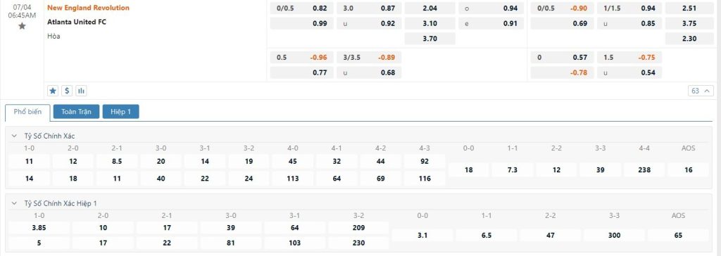 Tip kèo tỷ số hiệp 1: New England 1-1 Atlanta United