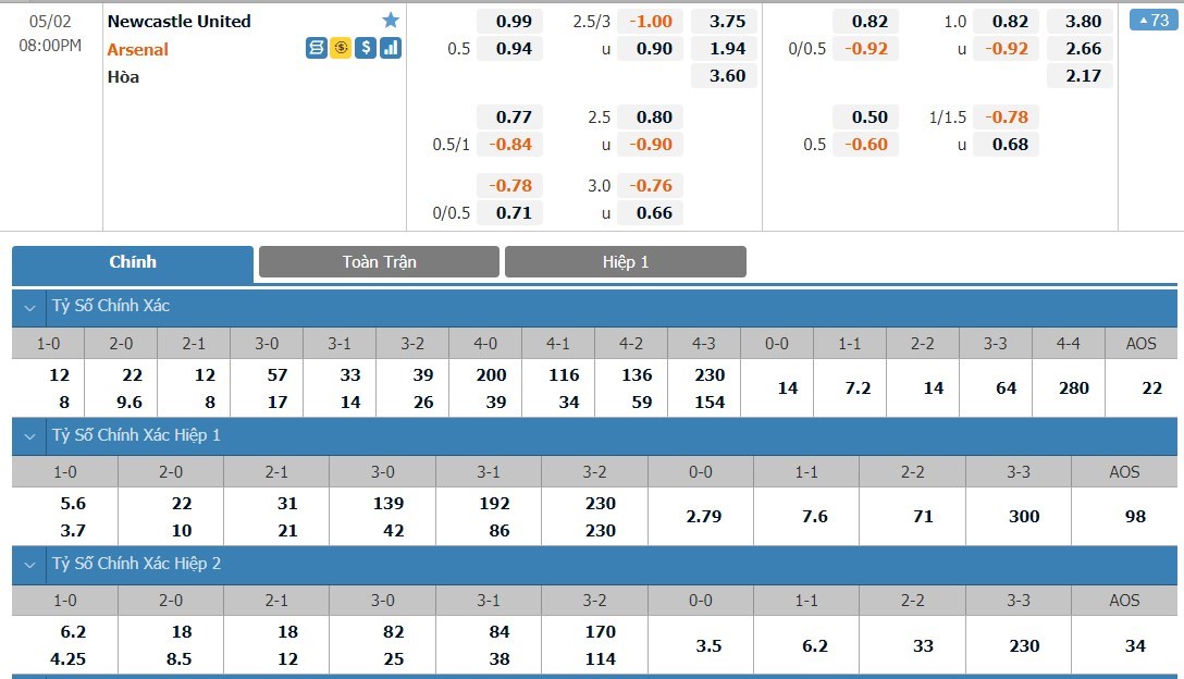 Tip kèo tỷ số full time: Newcastle United 1-1 Arsenal