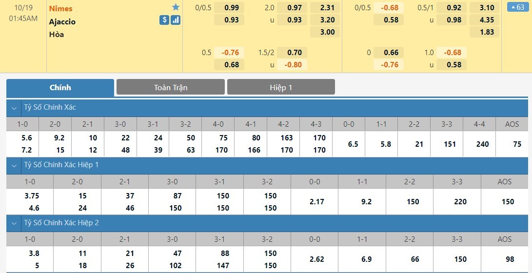 Tip kèo tỷ số hiệp 1: Nimes 0-0 Ajaccio