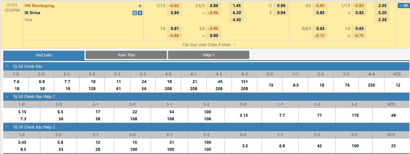 Dù vậy, với lợi thế sân nhà thì Norrkoping vẫn được nhà cái đánh giá ở thế cửa trên cùng kèo chấp 1 1/4 trái. Ở lần gần nhất 2 đội gặp gỡ, Norrkoping đã đánh bại Sirius ngay trên sân đối thủ với tỷ số 4-2. Cửa thắng của Norrkoping là sáng sủa hơn nhưng để tạo ra cách biệt thắng từ 2 bàn trở lên là nhiệm vụ khó thực hiện đối với Norrkoping. Lựa chọn cửa dưới là quyết định an toàn hơn.