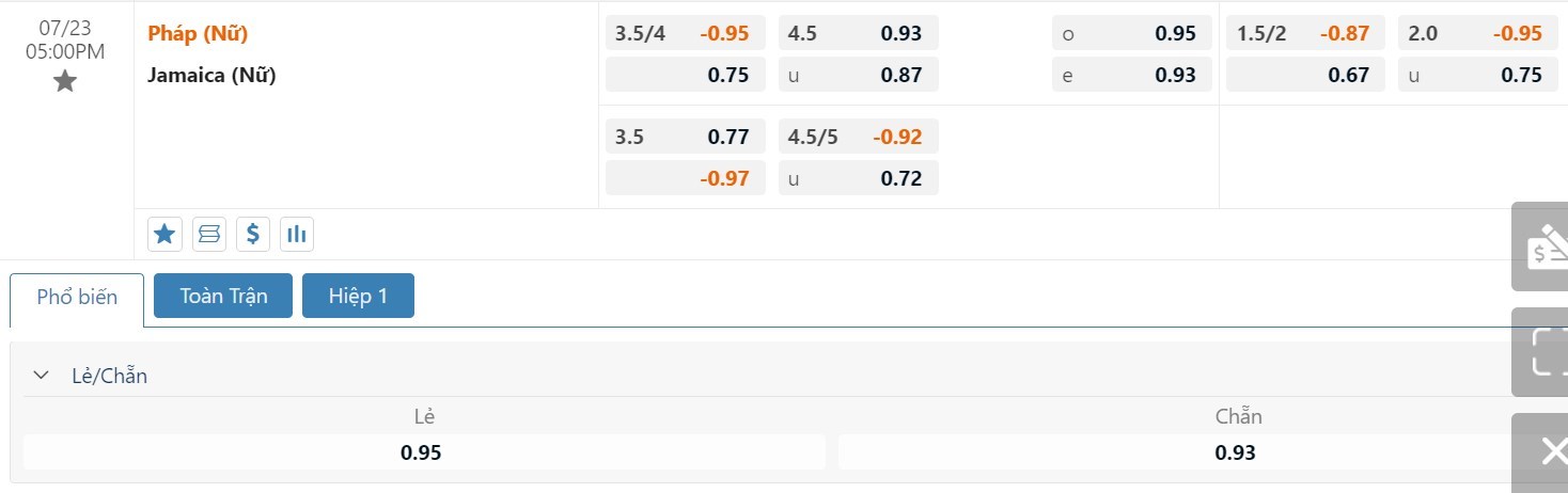 Tip kèo tỷ số hiệp 1: Nữ Pháp 3-0 Nữ Jamaica