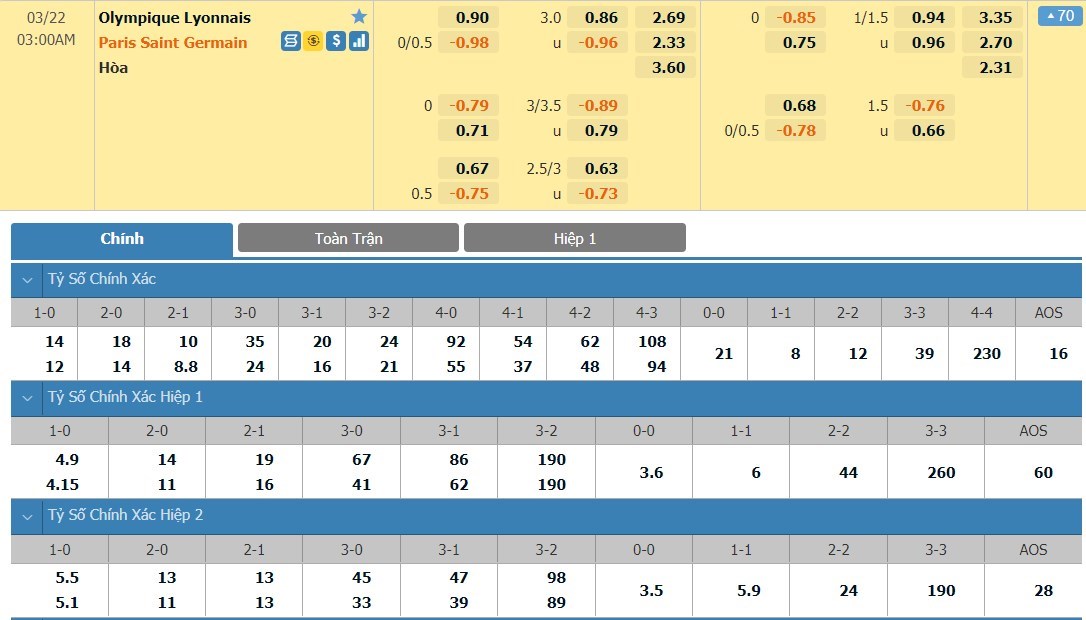 Đến làm khách trên sân của Olympique Lyonnais nhưng Paris Saint Germain vẫn được nhà cái đánh giá là đội cửa trên chấp tỷ lệ -1/4 bàn. Đây là nhận định chính xác khi Paris Saint Germain sở hữu dàn cầu thủ chất lượng tốt nhất ở giải đấu. Với các ngôi sao trải đều 3 tuyến, nếu thi đấu đúng sức, khó có đối thủ nào ở giải VĐQG Pháp có thể làm khó được nhà đương kim vô địch Paris Saint Germain.